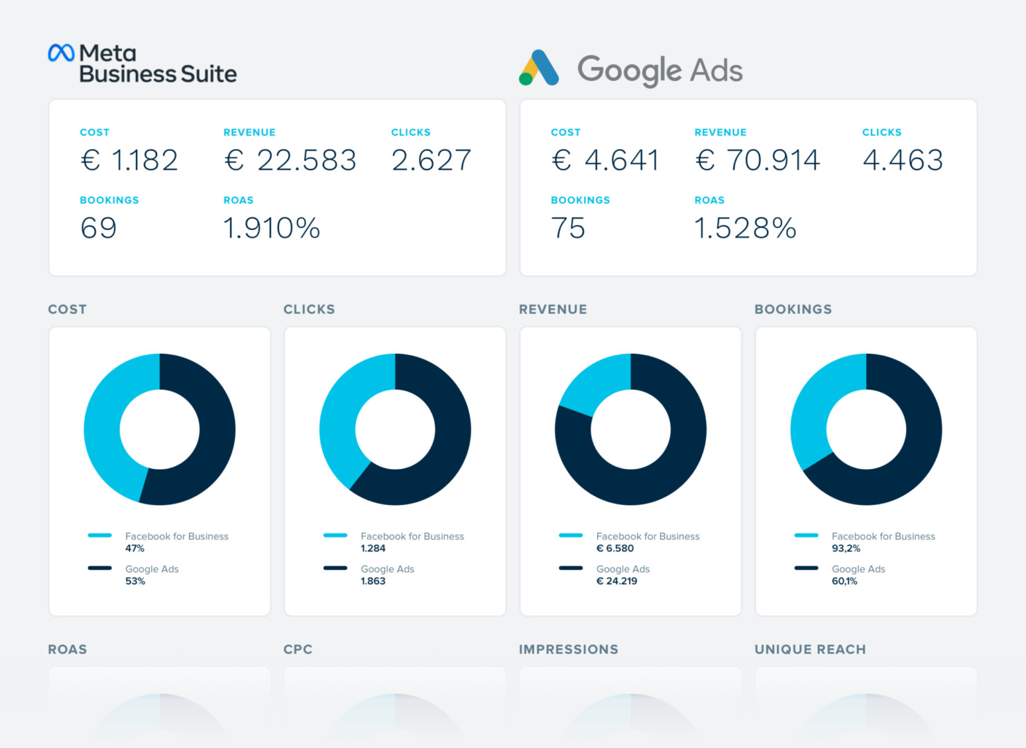 Our reservation software gives access to extensive statistics and revenue numbers of your organization(s) and accommodations. Compare, predict, and optimize.