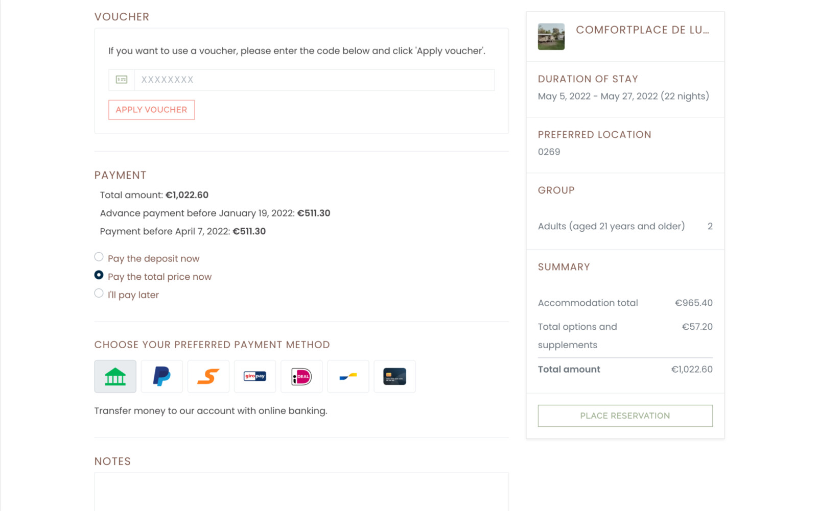 Deposits and payments online, at your site, via the guest environment, or at your location. We take care of immediate and automatic processing in our reservation software.