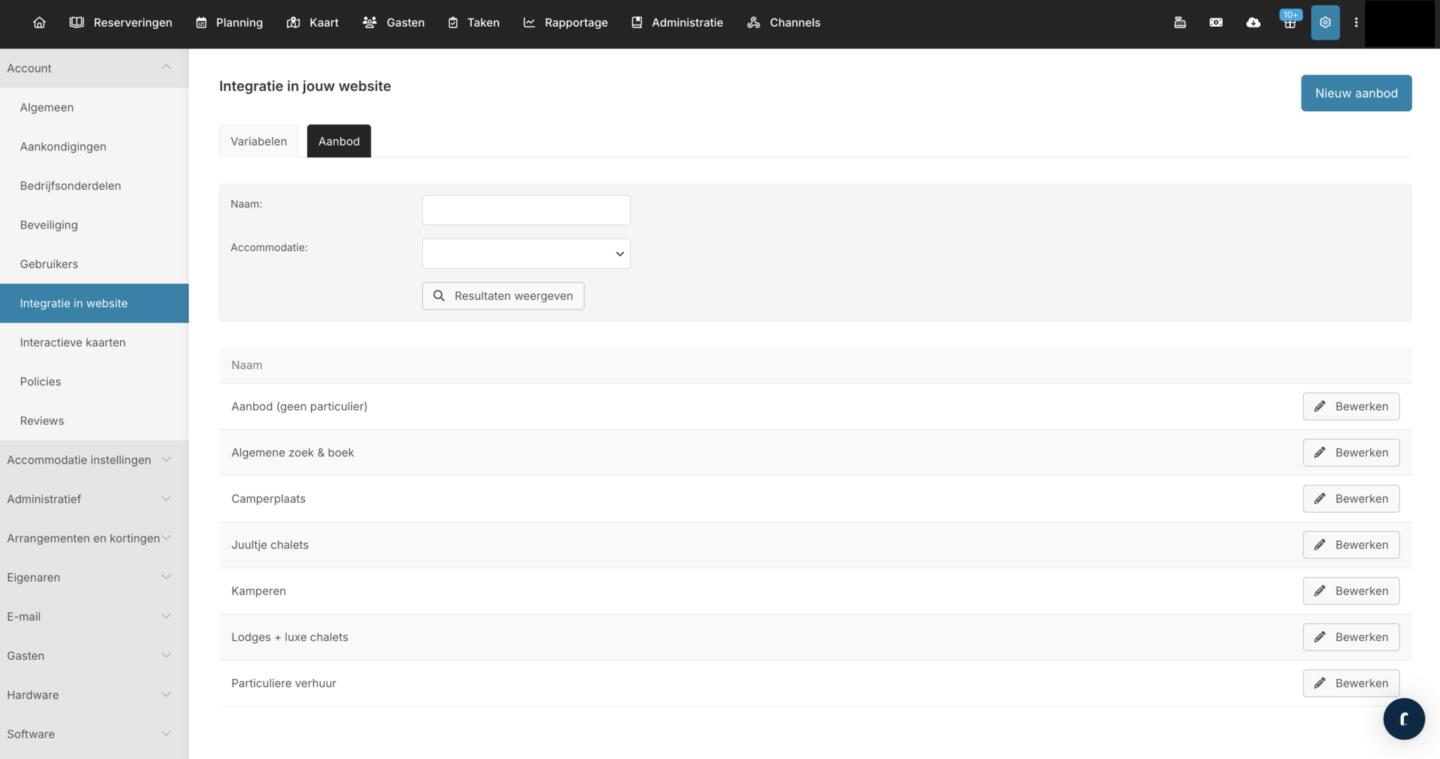 You can set up your offers yourself via Settings > Account > Website integration. When you go to the ‘Offers’ tab, you can create a new offer and link the desired accommodations.