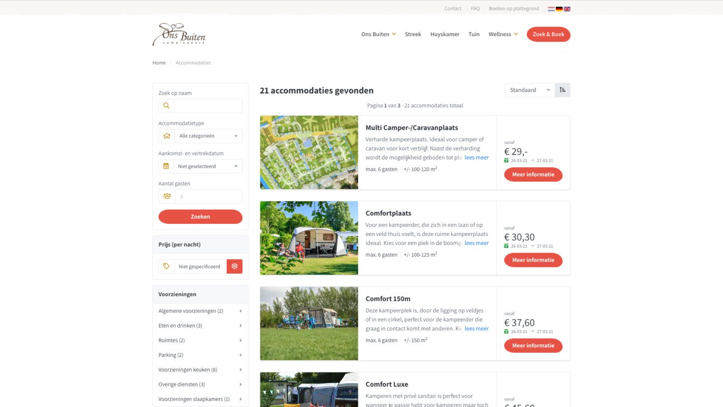 Campingpark Ons Buiten maakt gebruik van de unieke alles-in-1 oplossing van Recranet: een aansprekende website met CMS, ons reserveringssysteem Recranet Booking en strategische online marketing campagnes. Dit alles onder één dak en naadloos op elkaar afgestemd.