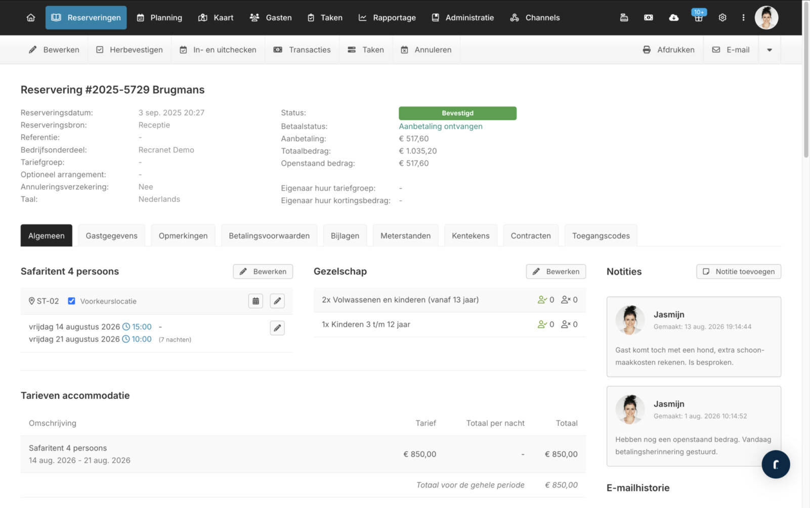 - Volledige e-mailhistorie in ons reserveringssysteem.