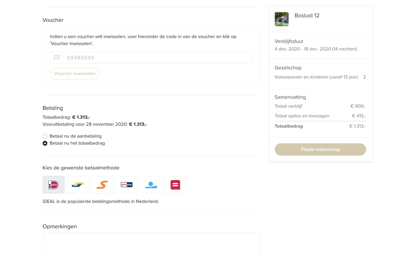 - Algemene reserveringsinformatie.