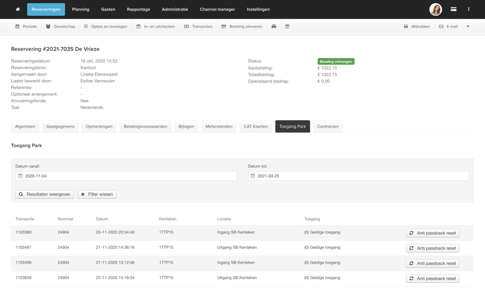 - Inzage in bezetting, aankomsten, inkomsten en afrekeningen.