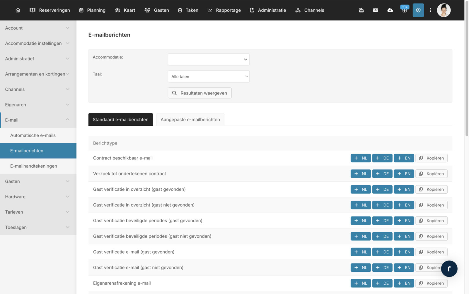 Reserveringsbevestigingen, review verzoeken, losse e-mails, aankomstinformatie, vouchers, bijlagen en meer; automatisch in de juiste taal verzonden naar jouw klant.