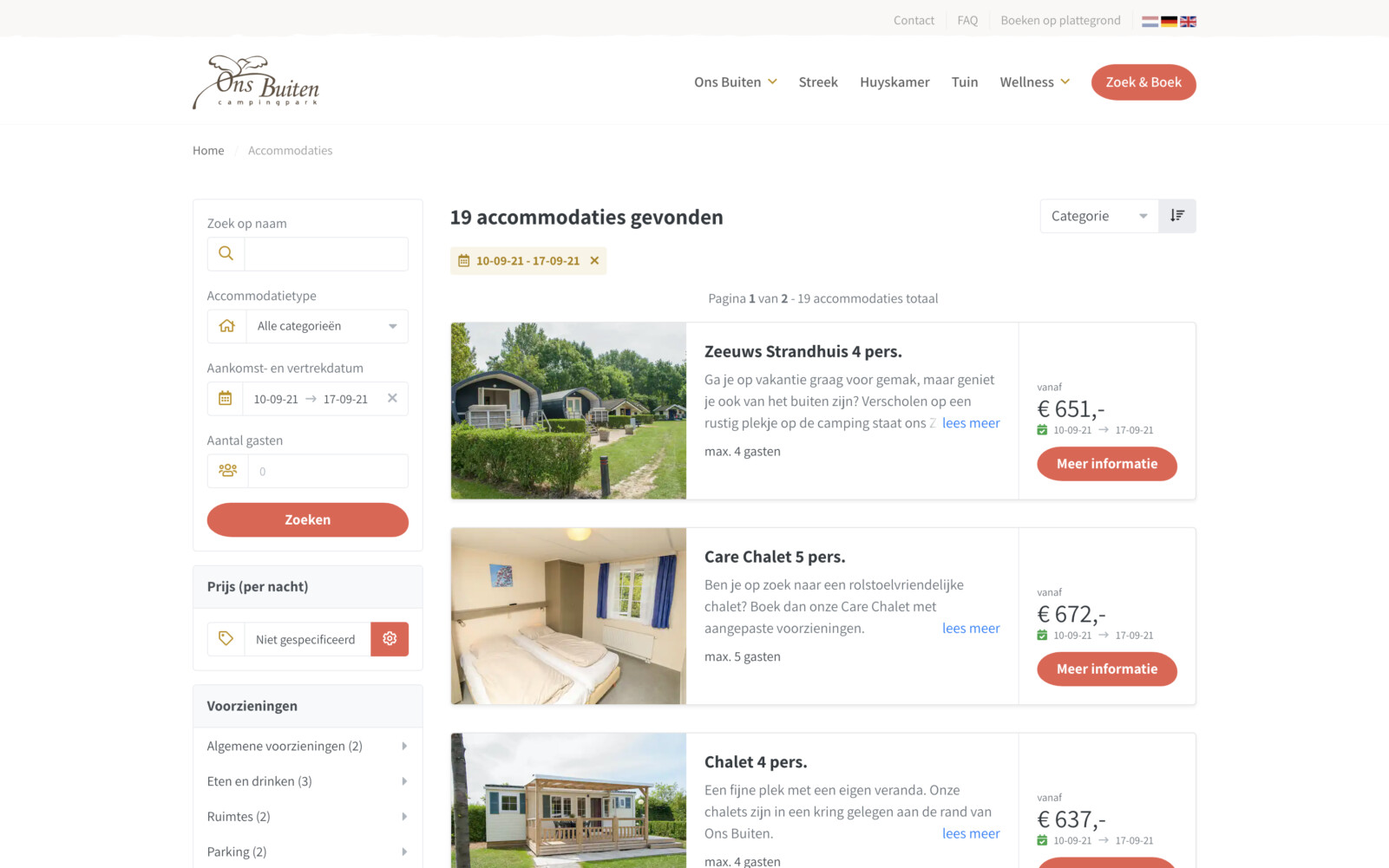 Ons reserveringssysteem heeft een gekoppelde razendsnelle zoek- en boek... Super gebruiksvriendelijk voor jouw bezoeker wat resulteert in meer boekingen en minder belletjes.