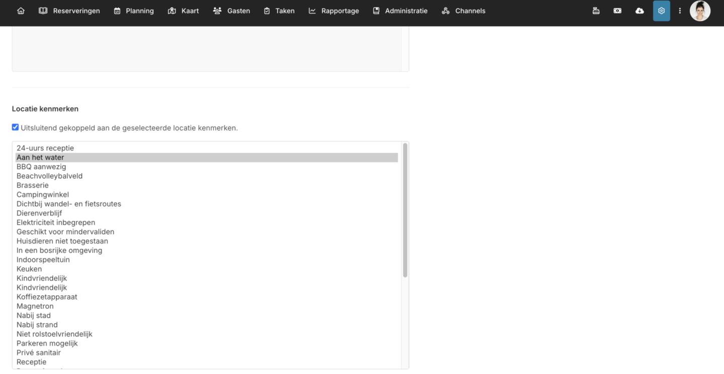 - Ga naar Instellingen > Accommodatie instellingen > Locatie kenmerken.