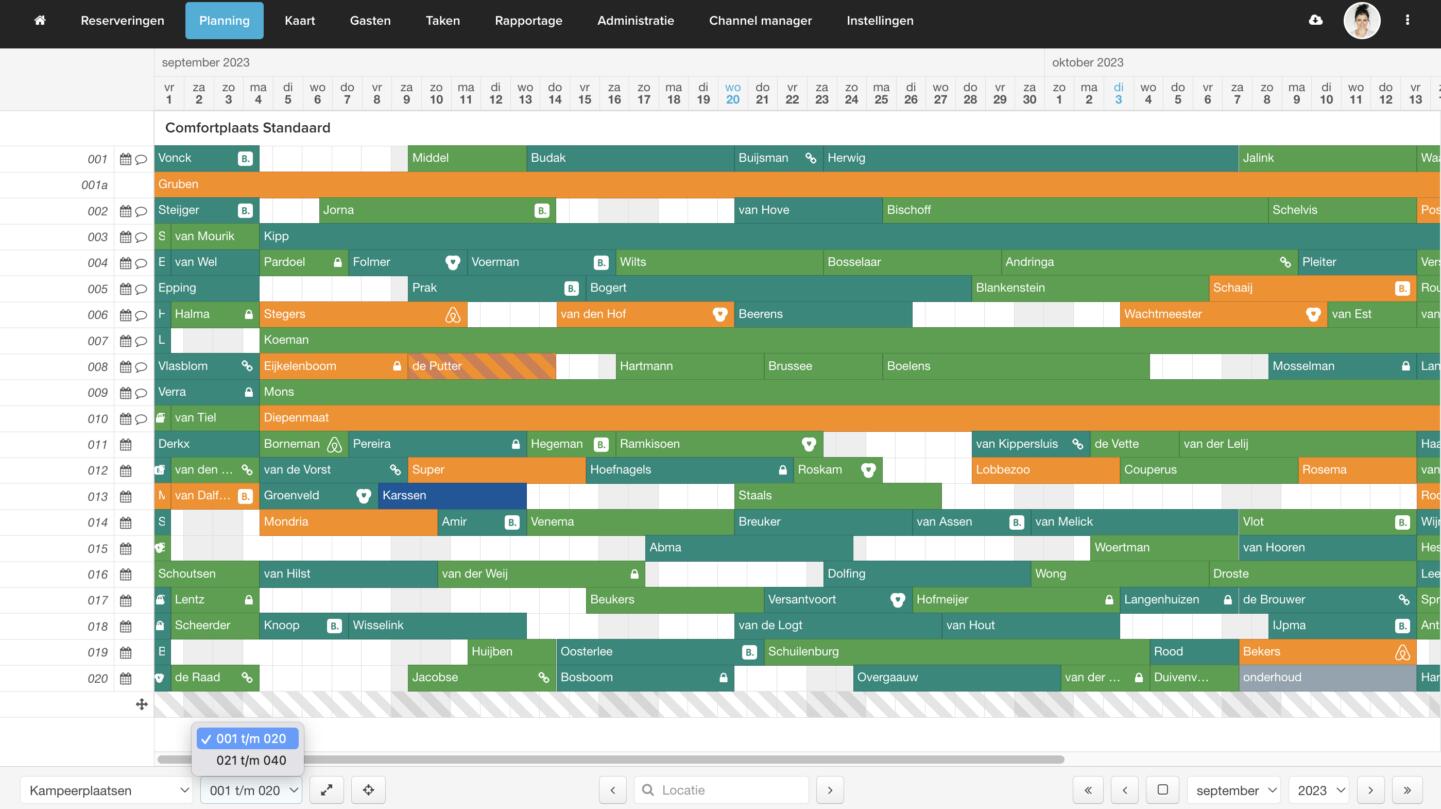 Wil je gemakkelijk in één oogopslag kunnen zien wat de bezetting is op een specifiek kampeerveld? Heb je honderden jaarplaatsen en wil je deze overzichtelijk groeperen? Maak dan gebruik van onze functionaliteit voor locatiegroepen. Je kunt zelf bepalen hoe je jouw planbord wilt groeperen, zodat je logisch en duidelijk overzicht kunt behouden. Maak bijvoorbeeld groepen aan per veld of per tiental of honderdtal locaties. Ook voor de verhuur van woningen uitstekend bruikbaar, door te groeperen op stad, dorp, gemeente etc.