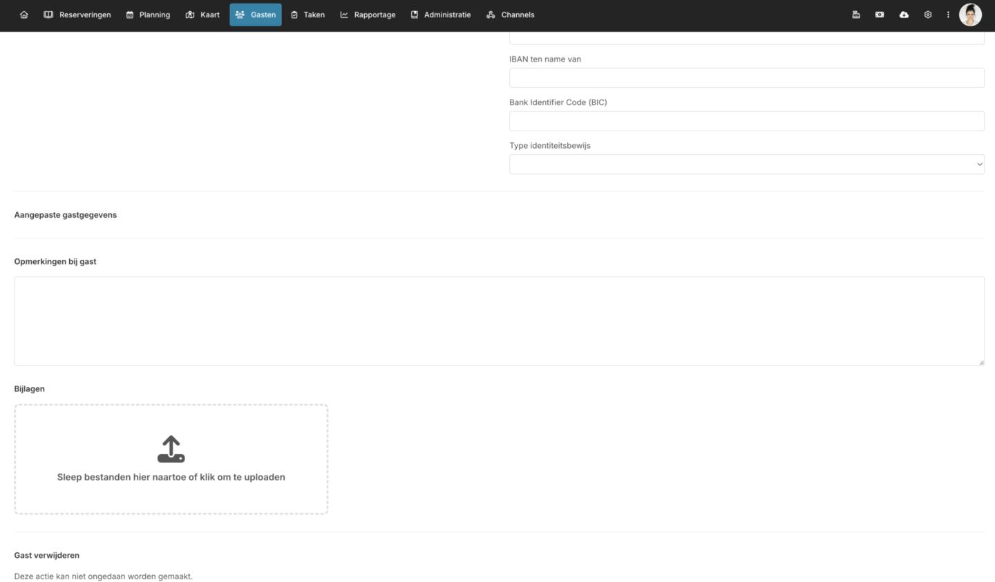 Vanaf nu kun je bijlagen niet alleen koppelen aan een reservering, maar ook direct toevoegen aan de gastkaart. Een ideale functie als je gast-specifieke documenten wilt bewaren, die je gemakkelijk kunt inzien wanneer de gast opnieuw een reservering plaatst. Een reservering is immers elke keer nieuw, daar waar de gastkaart altijd dezelfde blijft. Naast persoonlijke gegevens en historische reserveringen, zijn nu dus ook bijlagen/documenten terug te vinden op de gastkaart. Deze toevoeging maakt het beheren van de gastgegevens in het reserveringssysteem erg gebruiksvriendelijk!
