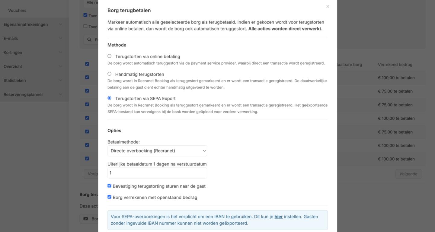 Borg in batch terugstorten via de bank m.b.v. een SEPA importbestand Update Reserveringssysteem 6 juni 2024