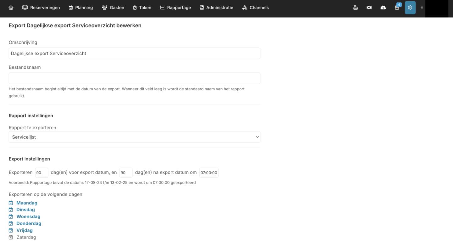 Interface voor automatisch versturen van rapportages naar een zelf in te stellen FTP server Update Reserveringssysteem 3 oktober 2024