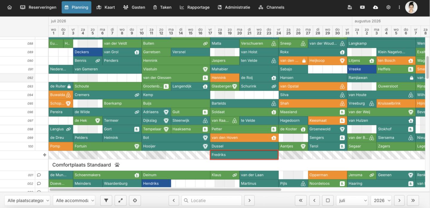 Vanaf nu waarschuwt het reserveringssysteem automatisch wanneer een reservering op de parkeerregel staat. De parkeerregel is een extra regel op het planbord, waar je reserveringen tijdelijk kunt 'parkeren'. Dit is heel handig, wanneer je ruimte wilt maken op je planbord om met reserveringen te kunnen schuiven. Als je echter vergeet de reservering terug op het planbord te plaatsen en deze op de parkeerregel laat staan, dan heeft de reservering geen toegewezen locatie en is er dus actie vereist.