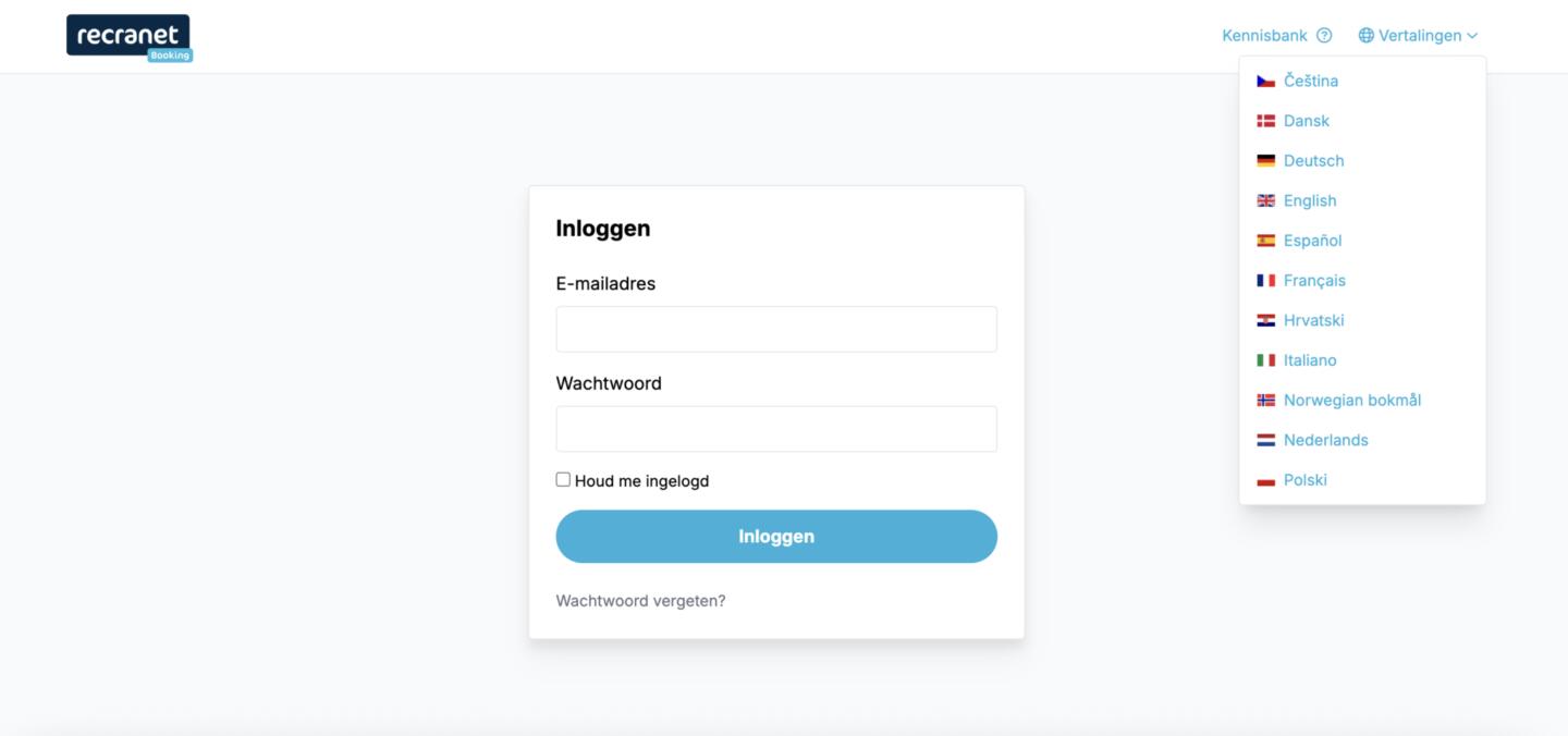 Het inlogscherm van het reserveringssysteem toont vanaf nu een taalswitcher, zodat je bij het inloggen gemakkelijk van taal kunt veranderen. De taal wordt slim bepaald op basis van de taalinstellingen in de browser, maar met behulp van de taalswitcher kun je nu ook gemakkelijk een andere keuze maken.