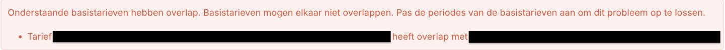 Wanneer je bij het invoeren of wijzigen van je tarieven per ongeluk een overlappend tarief invoert, zal het systeem je hier direct op wijzen met een duidelijke melding. De melding zorgt ervoor dat je direct ziet welke tarieven elkaar overlappen, zodat je weet wat je moet corrigeren om ervoor te zorgen dat alles correct op elkaar aansluit. Een slim systeem voorkomt menselijke fouten!