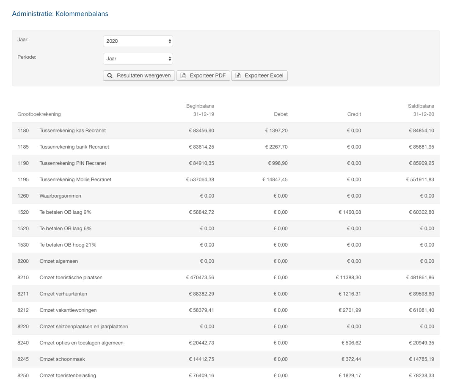 Om het inzicht in de boekhouding te verbeteren is een kolommenbalans rapportage toegevoegd. Hierbij zijn de debet en credit mutaties over een periode zichtbaar in de proefbalans met links de beginbalans en rechts de saldibalans.