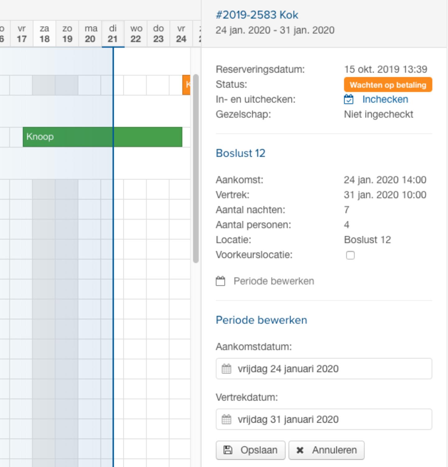 Een periode van een reservering kan nu eenvoudig worden aangepast via de reservering in het planbord. Voor een blokkade kunnen ook opmerkingen worden aangepast.