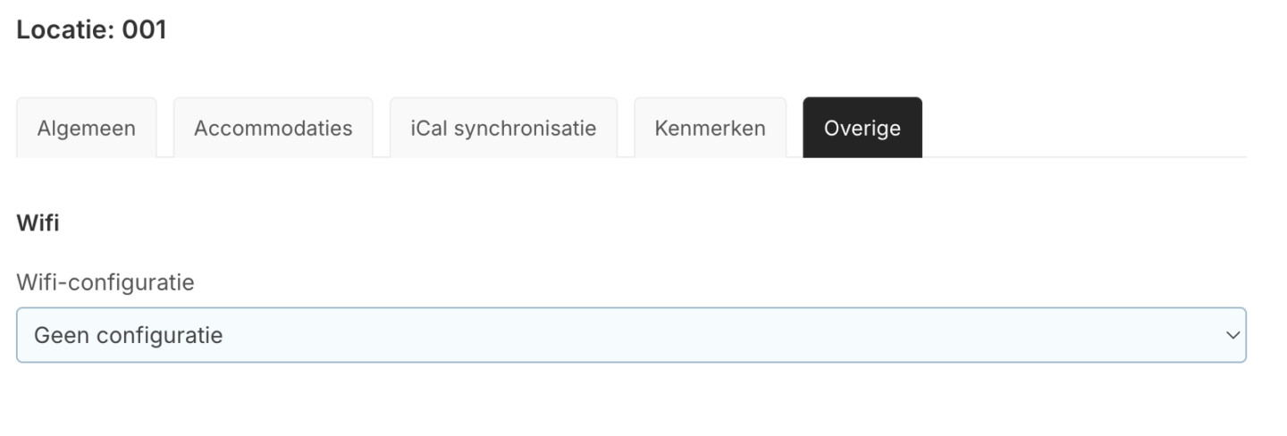 De configuratie kun je instellen via Instellingen > Accommodatie instellingen > Locaties. Onder het tabje 'Overig' kun je vervolgens de gewenste configuratie koppelen aan de gewenste locatie. Op deze manier is de configuratie alleen gekoppeld aan het object waarvoor het van toepassing is.