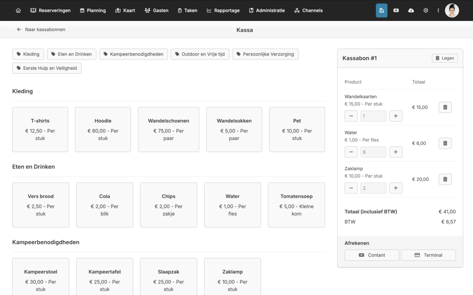 Kassafunctie in reserveringssysteem