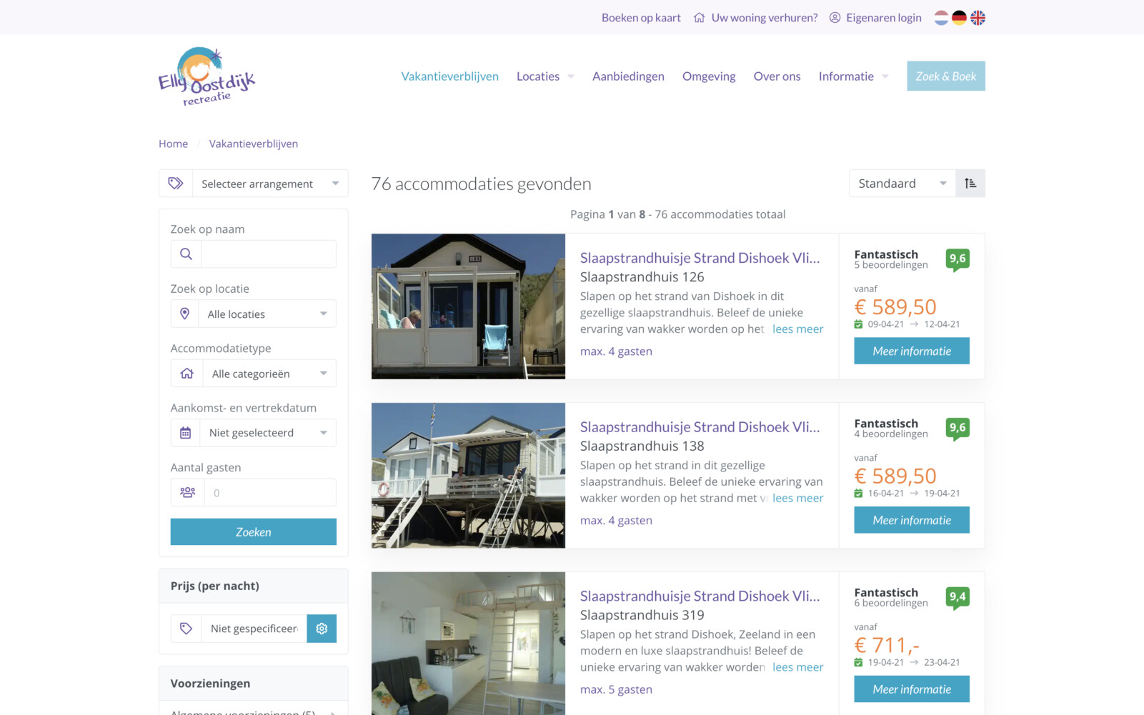 Met ons online reserveringssysteem voor verhuur krijgt elke accommodatie een eigen informatiepagina waarop je gast meer informatie kan vinden over uw verhuur accommodatie. Je gast kan vanuit deze informatiepagina de accommodatie direct boeken.
