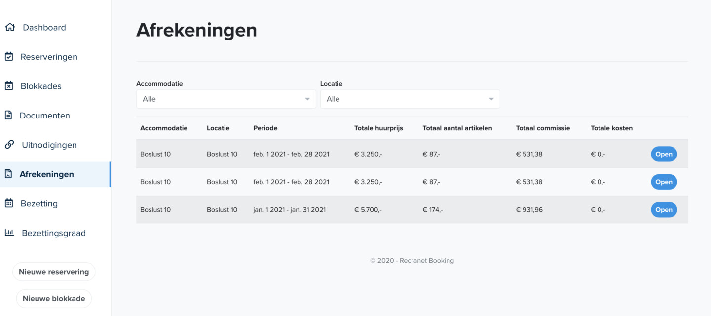 Als beheerder kun je zelf bepalen welke verhuurder toegang krijgt en welke niet. Dit doe je met de eigenaren modules die je optioneel kunt (de)activeren per eigenaar.Rec Daarbij biedt ons reserveringssysteem de mogelijkheid geautomatiseerd e-mail rapportages te sturen naar de eigenaren van woningen met algemene informatie, inkomsten, commissie, etc.