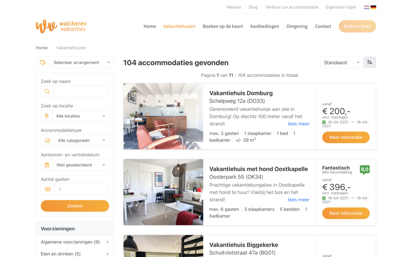 De Zoek en Boek module van ons online reserveringssysteem biedt jouw gast veel gemak bij het zoeken naar beschikbare accommodaties. Aan de hand van de gekozen aankomst- en vertrekdatum krijgt de gast een overzicht van beschikbare accommodaties in de gewenste periode. Indien er geen resultaten zijn in een gekozen periode worden alternatieven getoond.